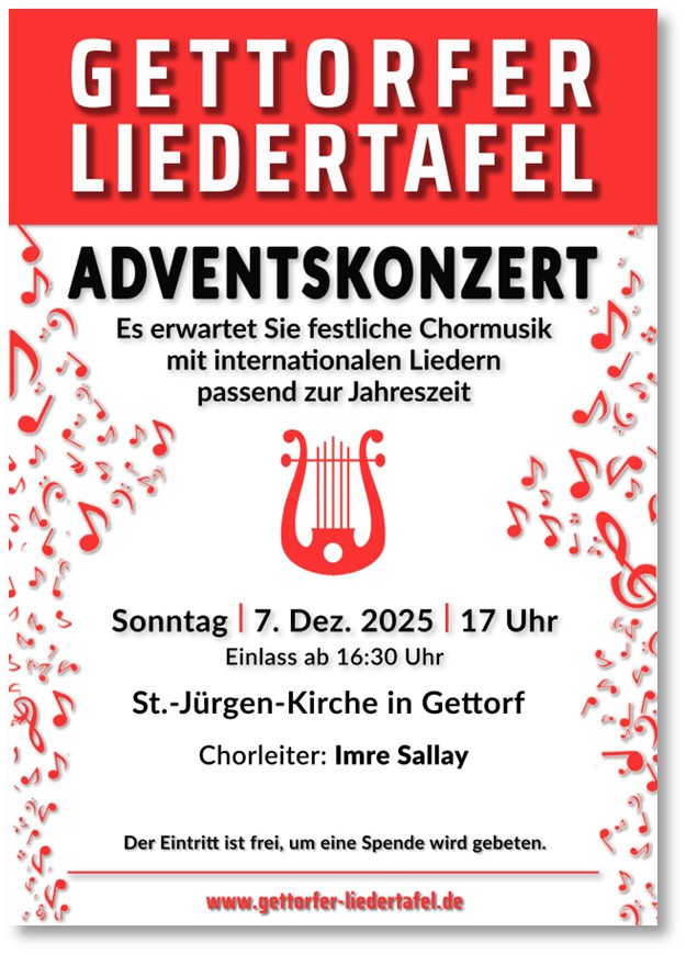 – 2025-12-07, 17 Uhr – Adventskonzert der Gettorfer Liedertafel