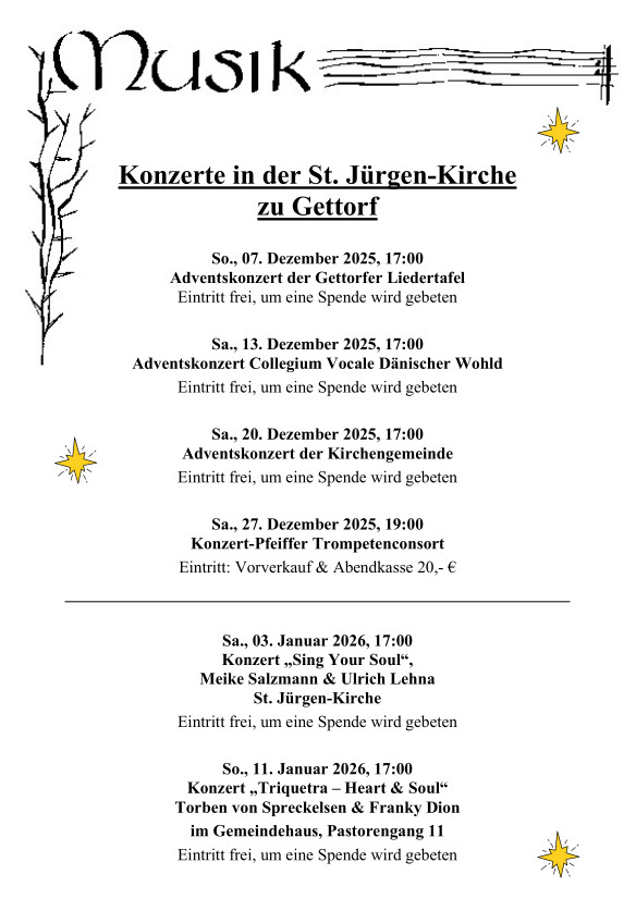 – 2025-12-20, 17 Uhr: Weihnachtskonzert der Kirchengemeinde Gettorf